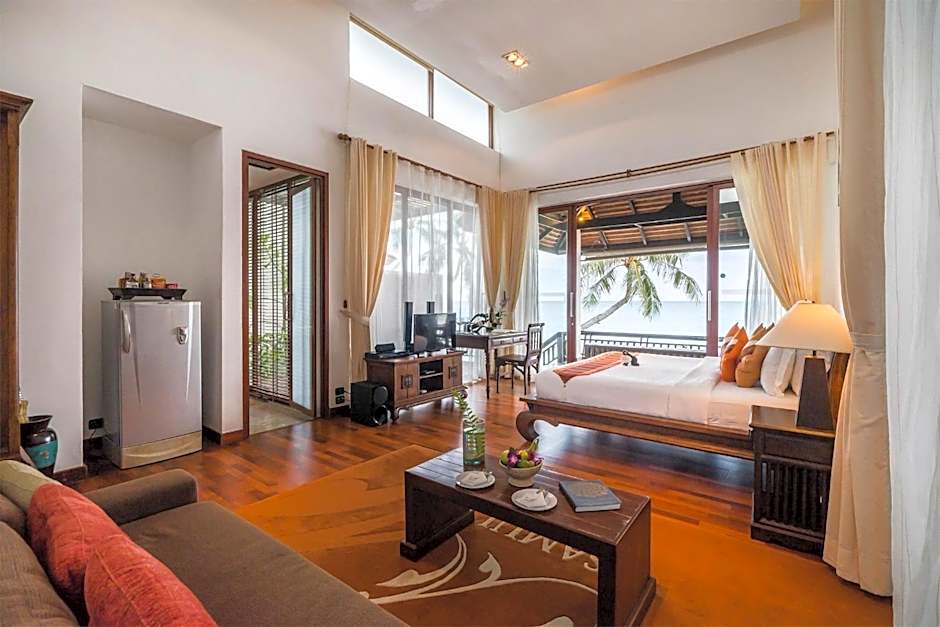 These villas are large, offering spacious and luxurious interiors. Guests enjoy a garden view from the villa.